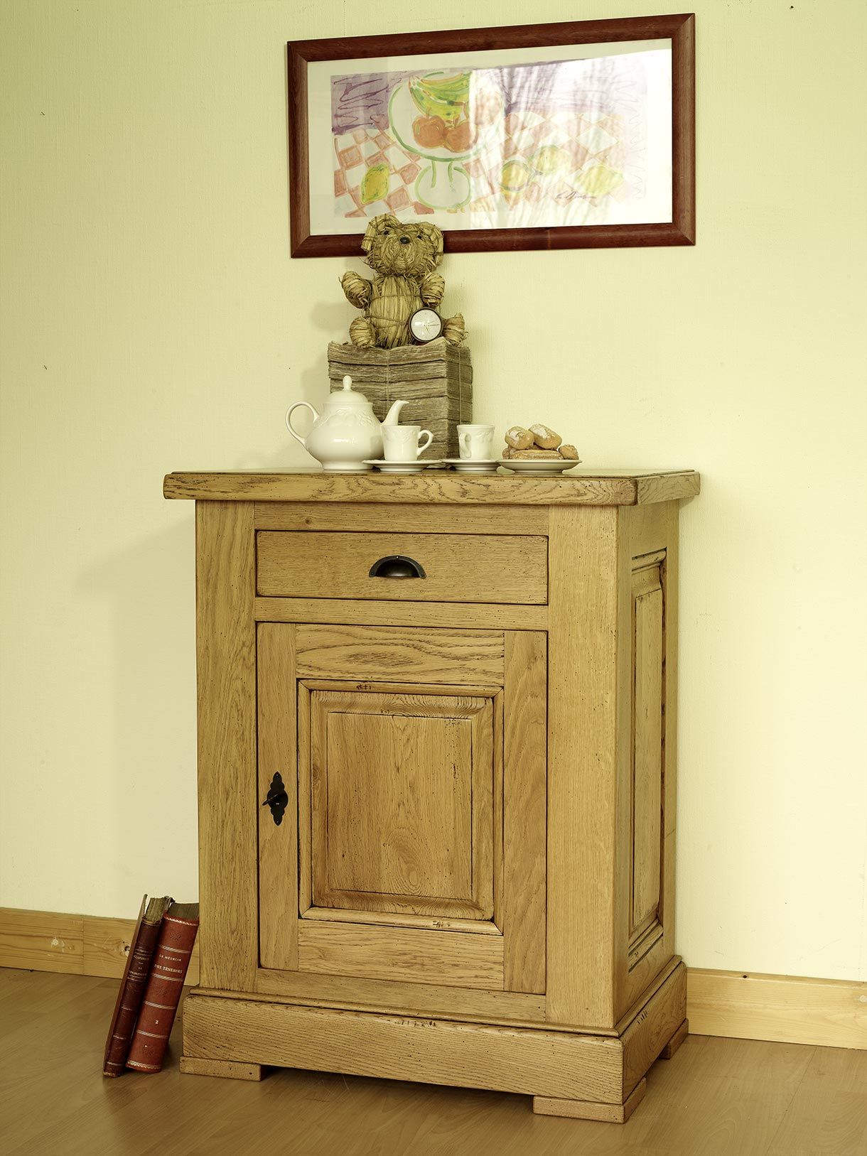 La teinte blonde très actuelle du chêne est mise en valeur par la belle patine à la cire teintée.