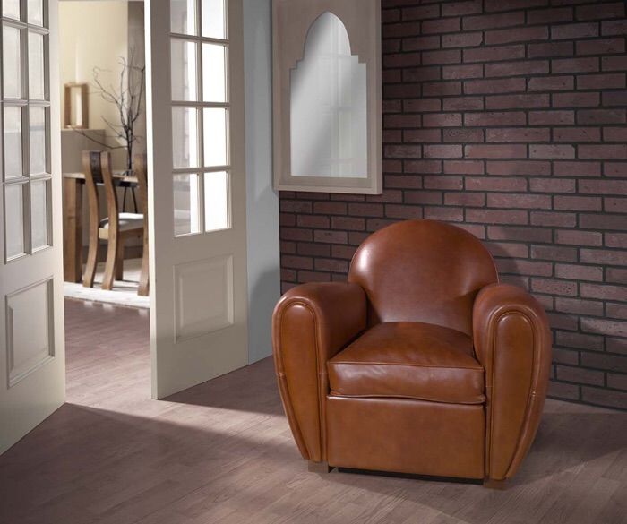 Canapé et fauteuil "club" traditionnel en cuir de mouton patiné main ou cuir de vachette.