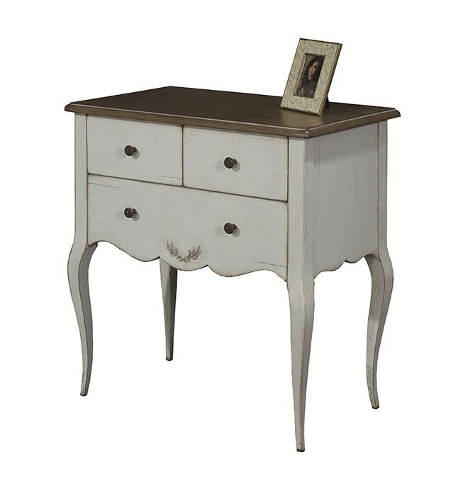 Les nombreuses étapes faites main de la finition et le choix de teintes laiteuses, gris clair, taupe ou crème confèrent aux meubles Mazet une authenticité rehaussée d’une pointe de modernité.
